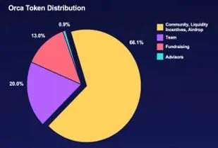 ORCA* is Orca’s* Solana*-based SPL governance token. Orca’s* token launched in August 2021, almost six months after the protocol went live. The initial supply of ORCA*, 5.25% of the total supply, was retroactively airdropped to early traders and liquidity providers (i.e. platform users). 20% of the total supply was allocated to the team, with a 3-year vesting schedule and 1-year cliff. Since the airdrop, ORCA* has been used primarily for liquidity incentives (e.g., Aquafarms) and fundraising.